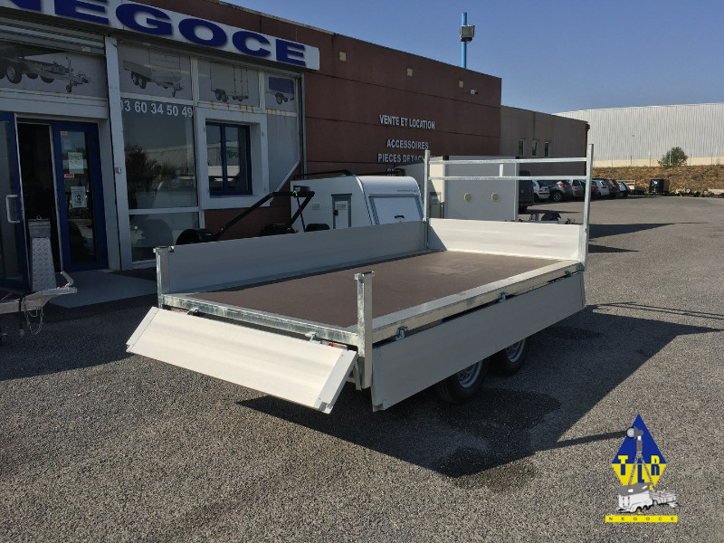 REMORQUE PLATEAU RIDELLES 2 ESSIEUX ALU 300X150CM 750KG